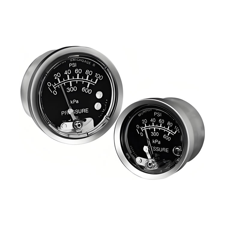 表盤:白色表盤,黑色刻度;美國標(biāo)準(zhǔn)刻度為汞柱英寸/千帕。