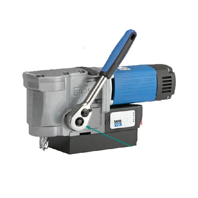 MAB 155PRO 超緊湊型磁力鉆核心特點:獲獎設計,集成LED照明系統(tǒng),提升作業(yè)可見度后置式人體工學控制手柄,操作便捷極致輕巧,機身高度僅7-1/8英寸(約181mm)棘輪式進給機構,適用于狹窄空間作業(yè)進給手柄可適配左/右兩側安裝支持3/4英寸Weldon柄鉆頭,最大切削深度1-1/2英寸技術參···